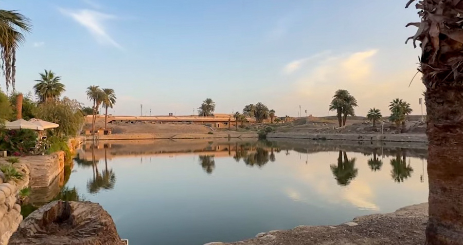 Dikilitaştan sonra devam ediyoruz gezmeye. Aniden karşıma bir göl çıkıveriyor, hurma ağaçlarının yansımalarıyla… Serap görüyorum sanıyorum 🙂